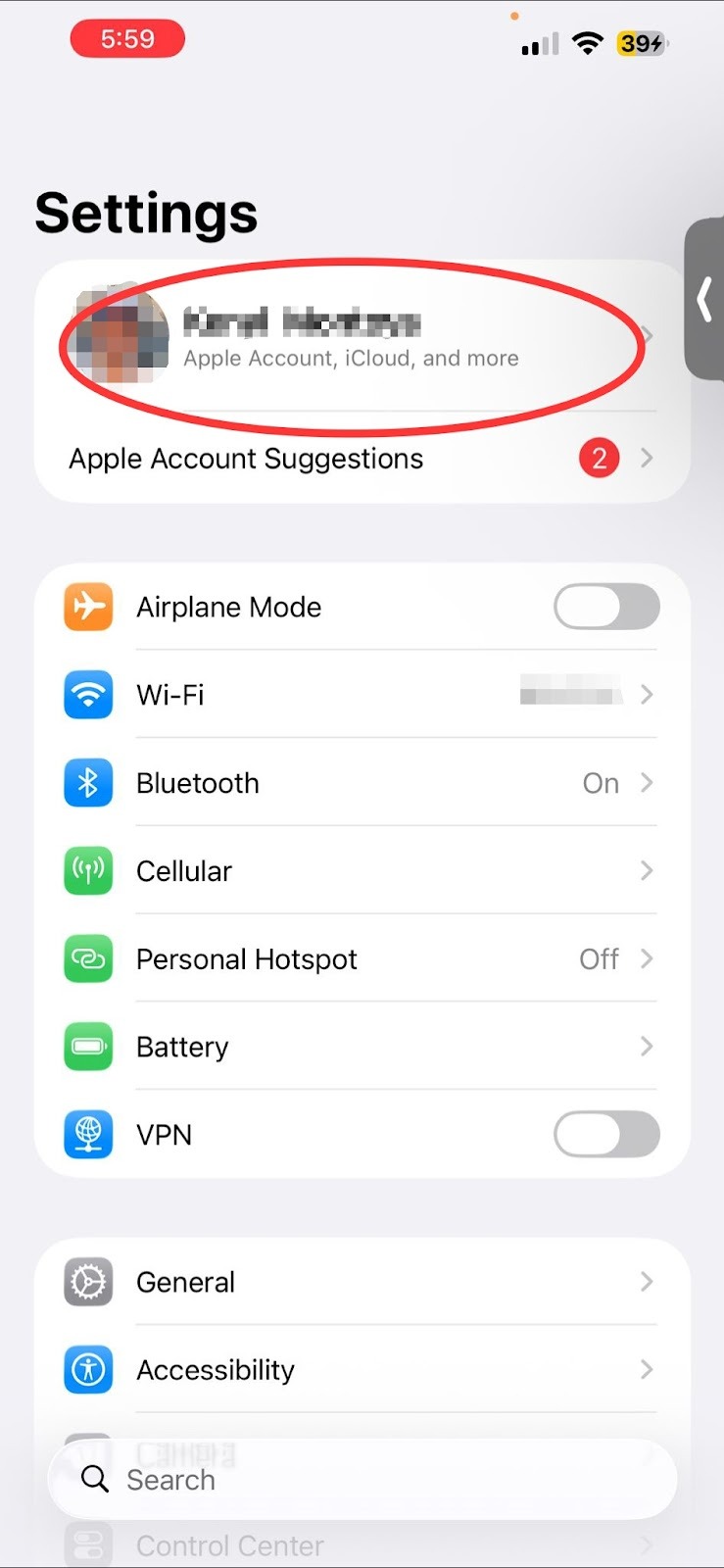 Open Settings and tap on [Your Name] (Apple ID) at the top of the screen.