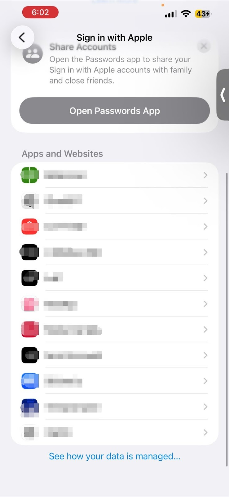 Select MyOutdoorTV® from the list of apps utilizing your Apple ID.